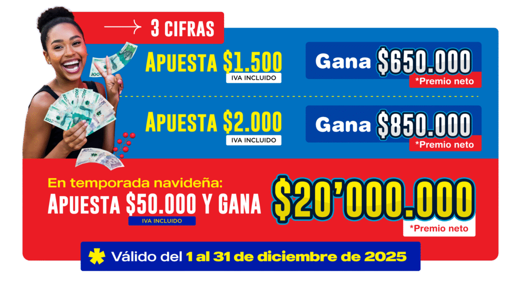 * En San Andrés y providencia el precio de la apuesta es de $3.362 (Exento de IVA)